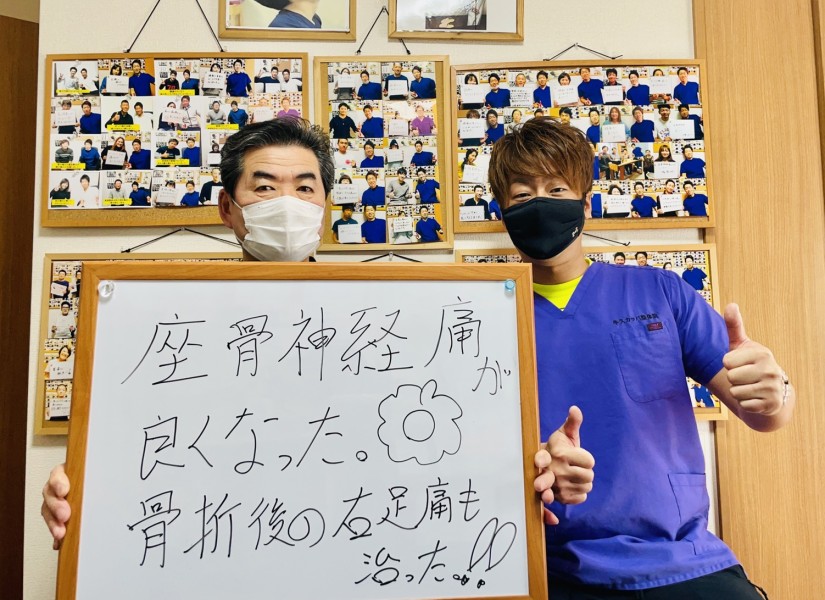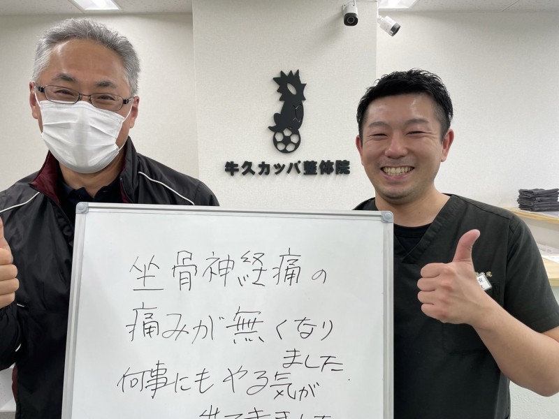 「坐骨神経痛が改善し,車の乗り降りや屈み込みが楽になりました!!」